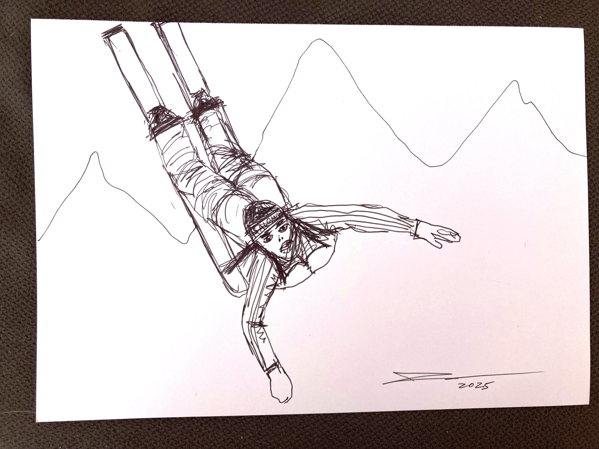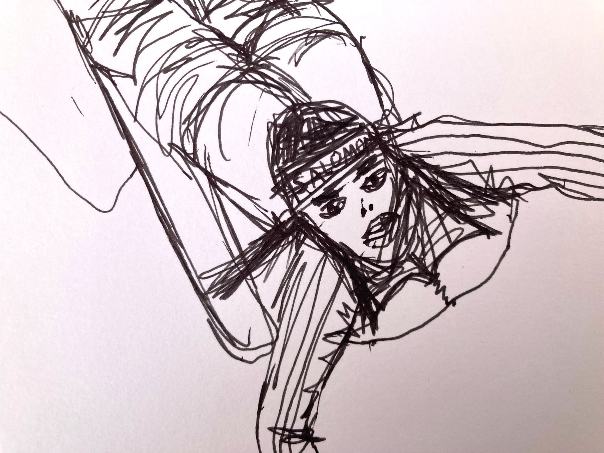 original one-of-a-kind drawing in black pen ink on white paper, measuring 7" x 10", signed by me, juliana h :)
