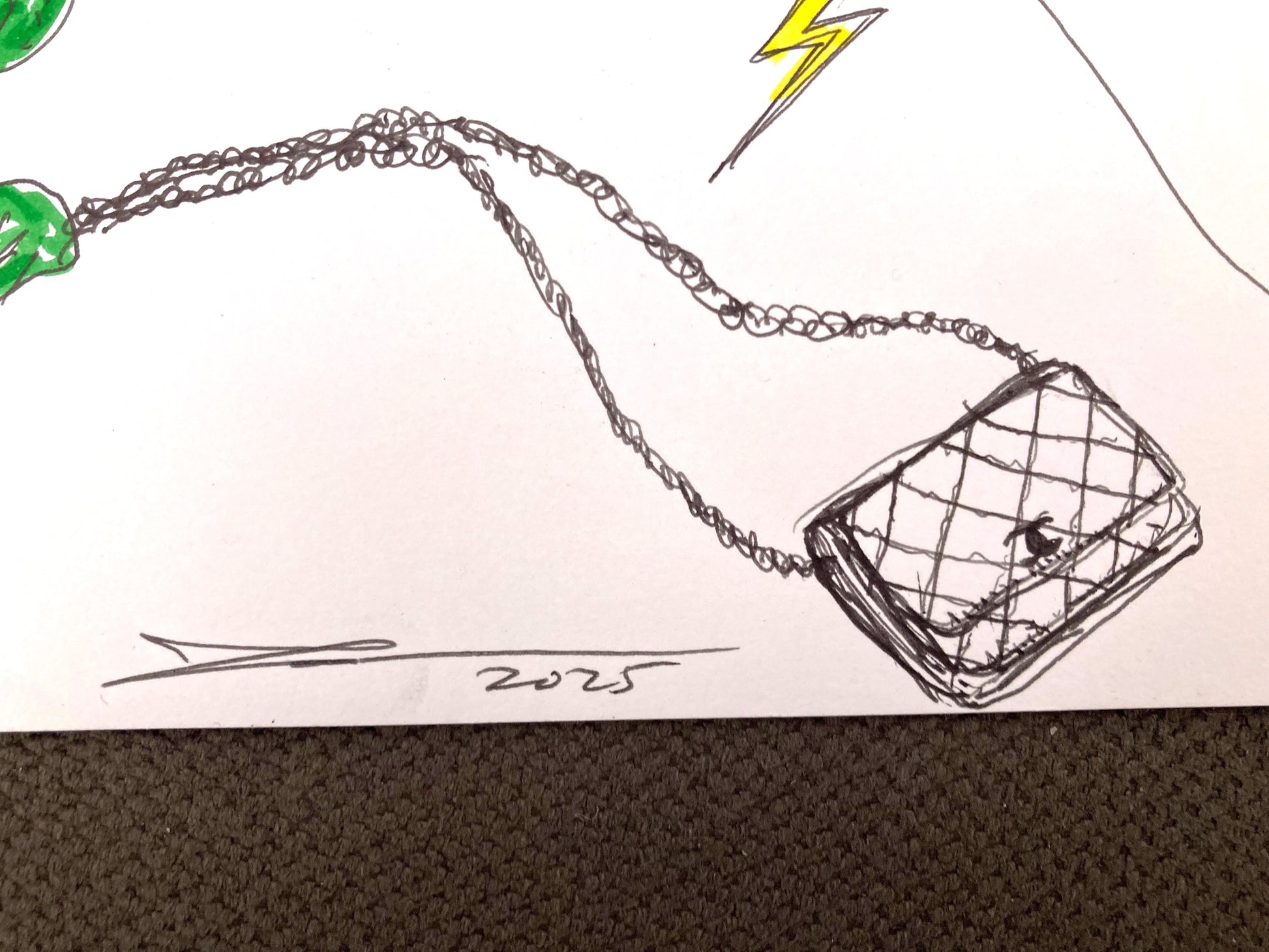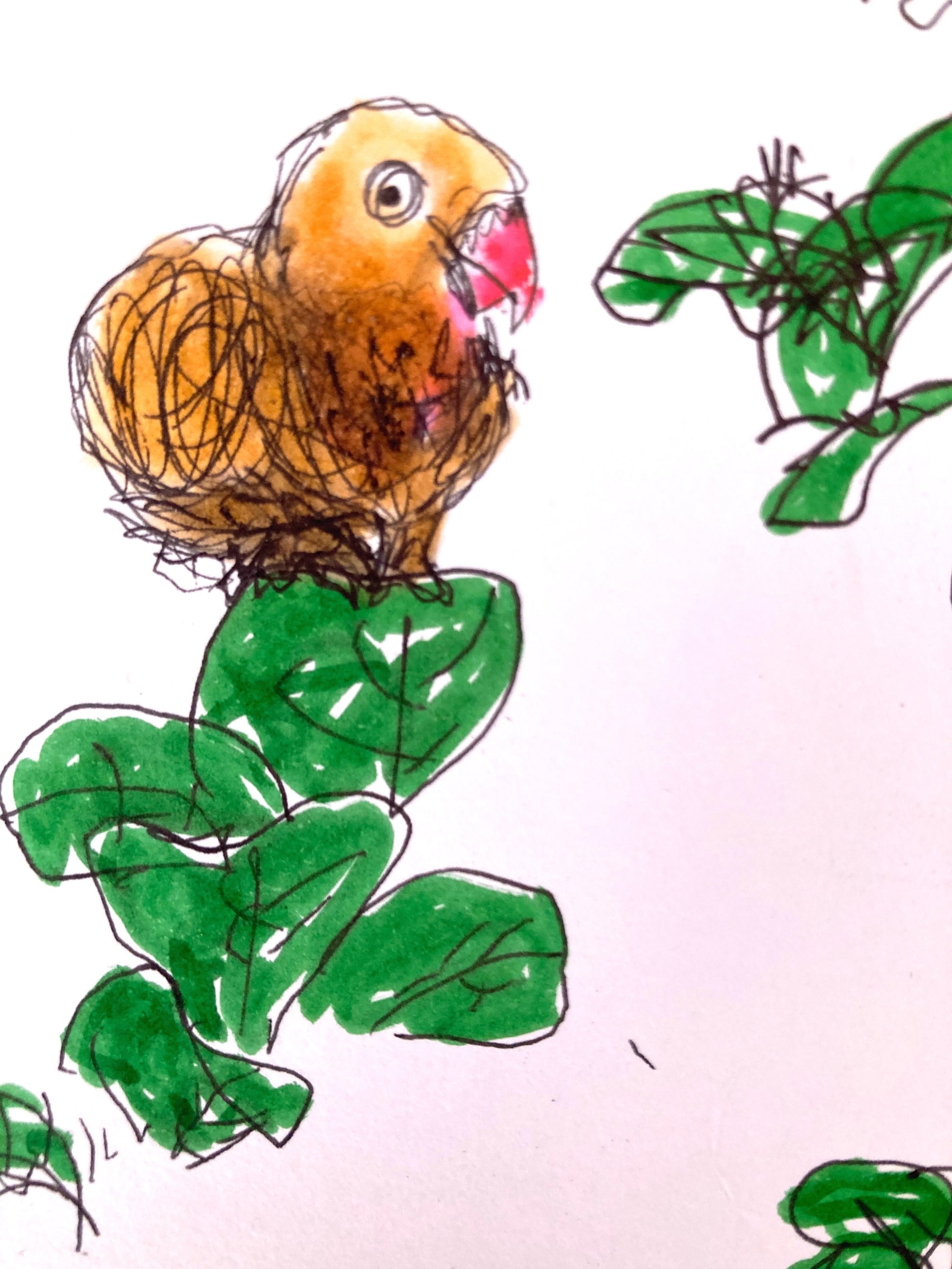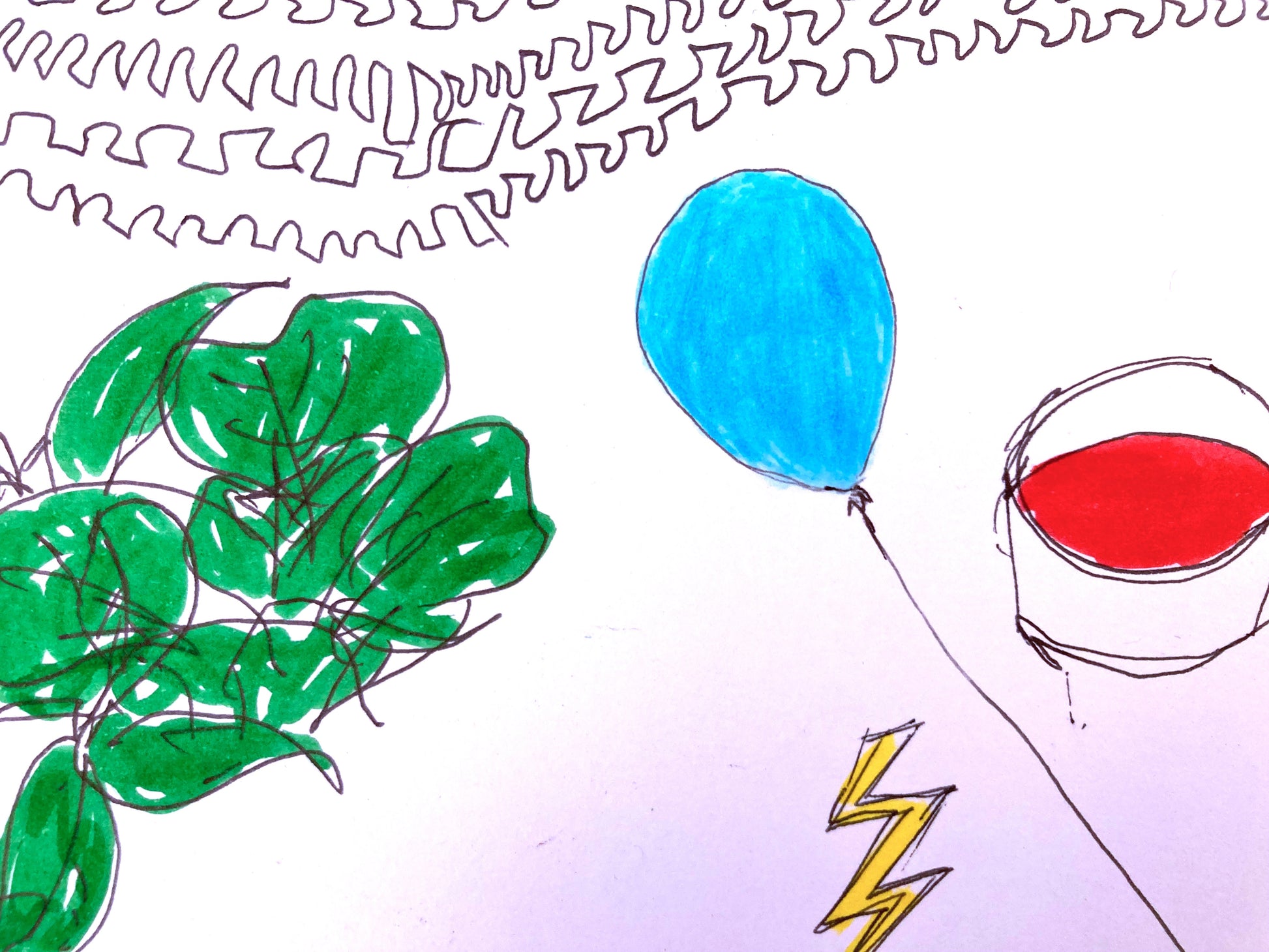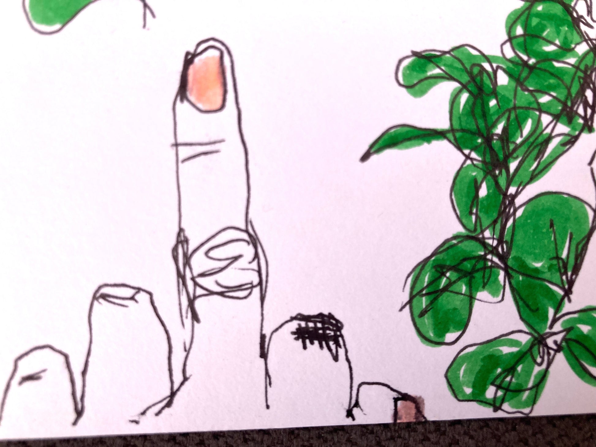 original one-of-a-kind small drawing in black pen ink and colored marker on white paper, measuring 5.5" x 8.25", signed by me, juliana h :)