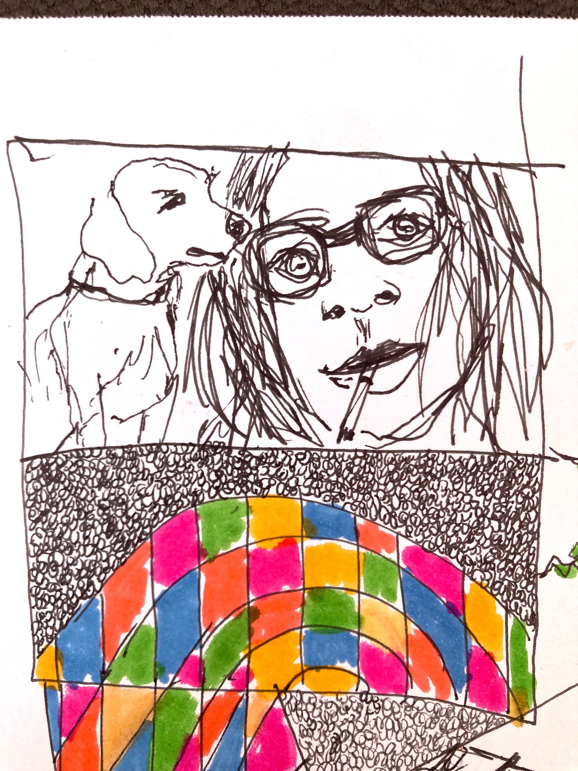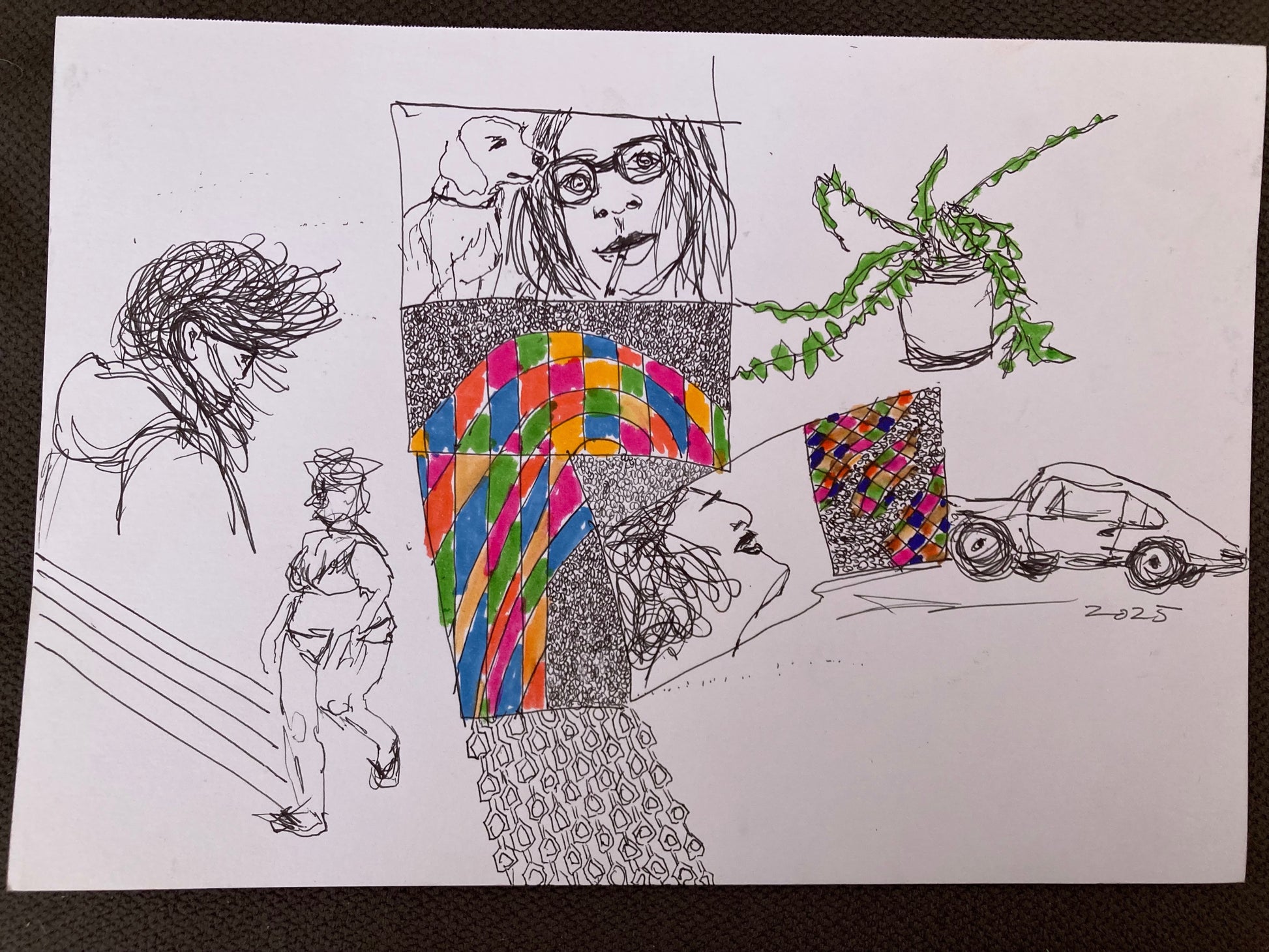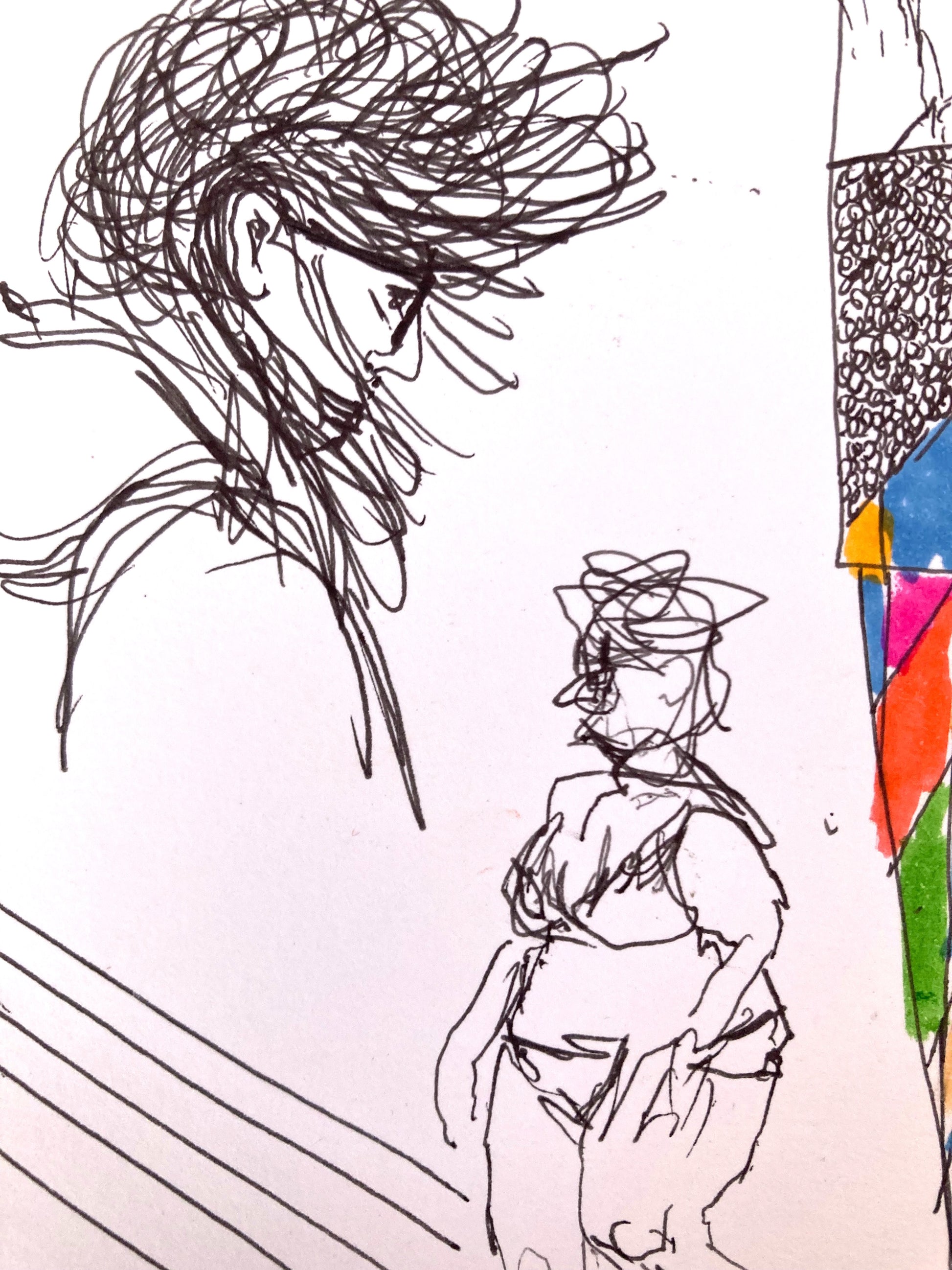 original one-of-a-kind drawing in black pen ink and colored marker on white paper, measuring 7" x 10", signed by me, juliana h :)